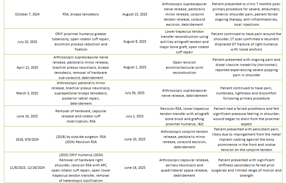 • Patient Satisfaction/Complications Following Revision of Failed Shoulder Replacement